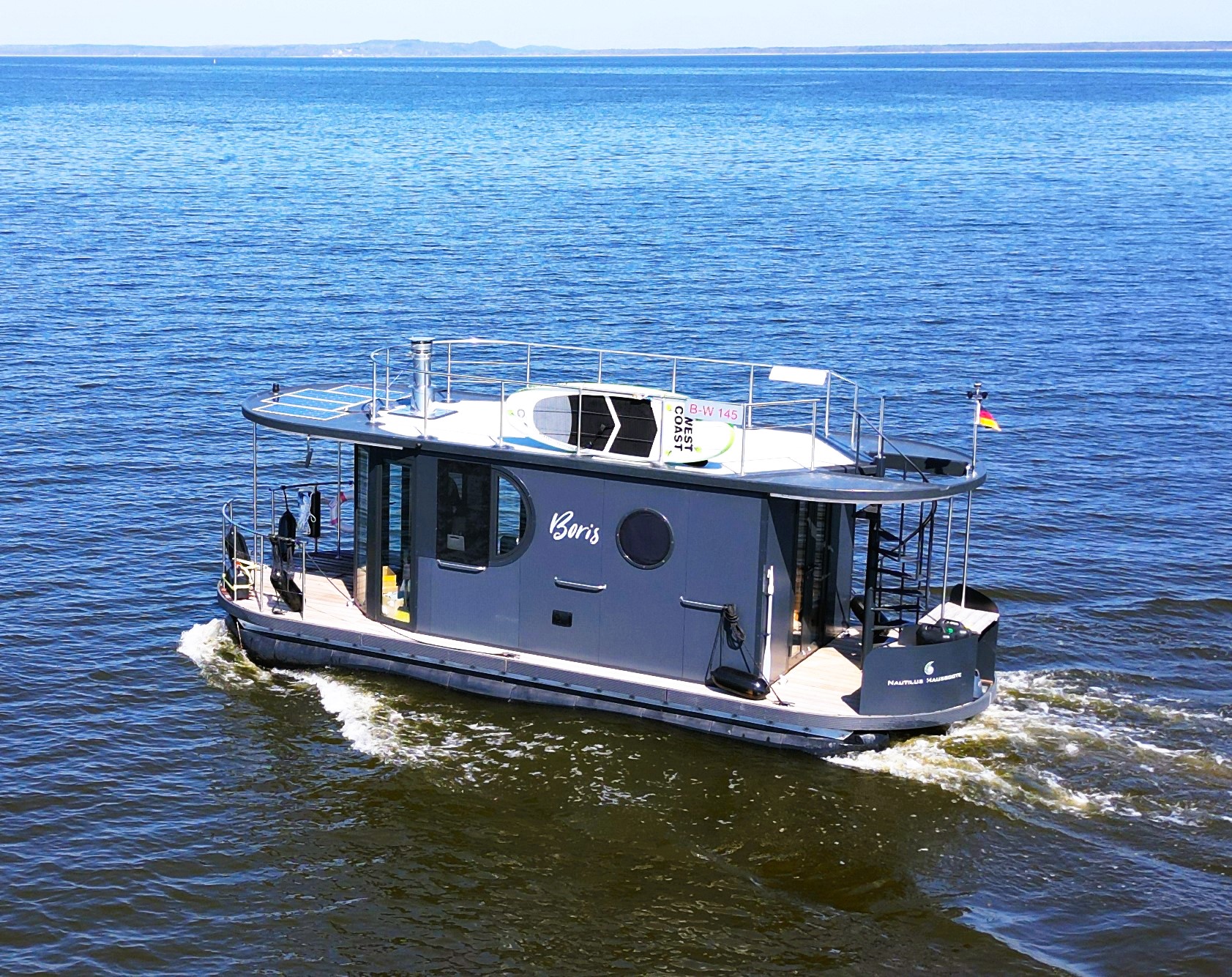 Unser Nautiki Mini ist der neuste Bootstyp in der Charterflotte. Auf 14,50 m² Wohn- und 29 m² Terrassenfläche bietet Ihnen das Nautiki Mini Platz für bis zu 4 Personen.